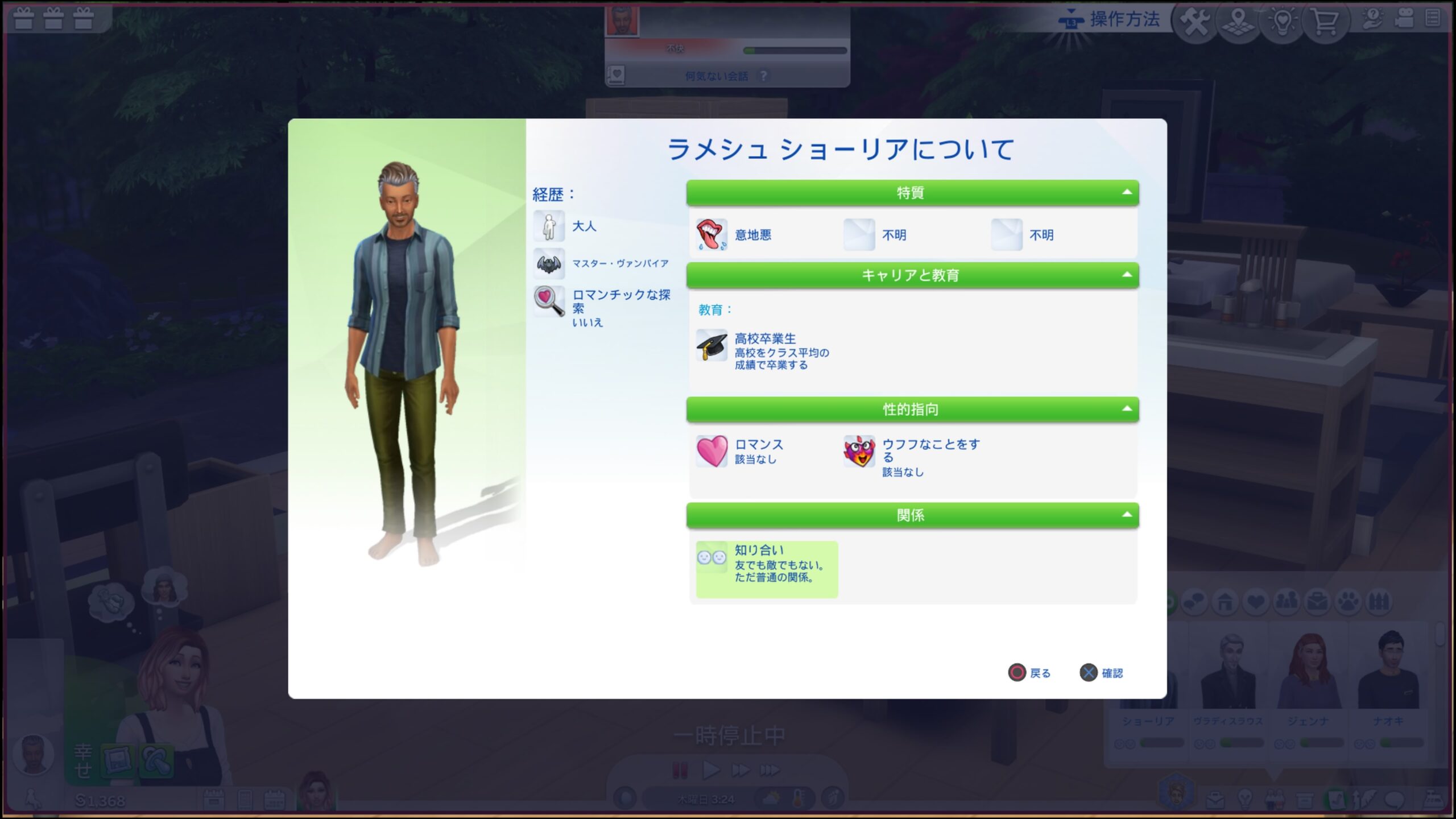 まあでも知り合ったシム全員の確認はできてないので知り合い増やすだけ増やして適宜家に呼び出して確認していきましょう